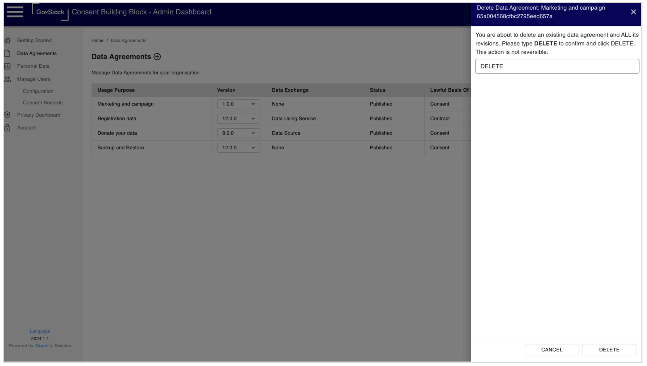 Figure 09: Delete Data Agreement