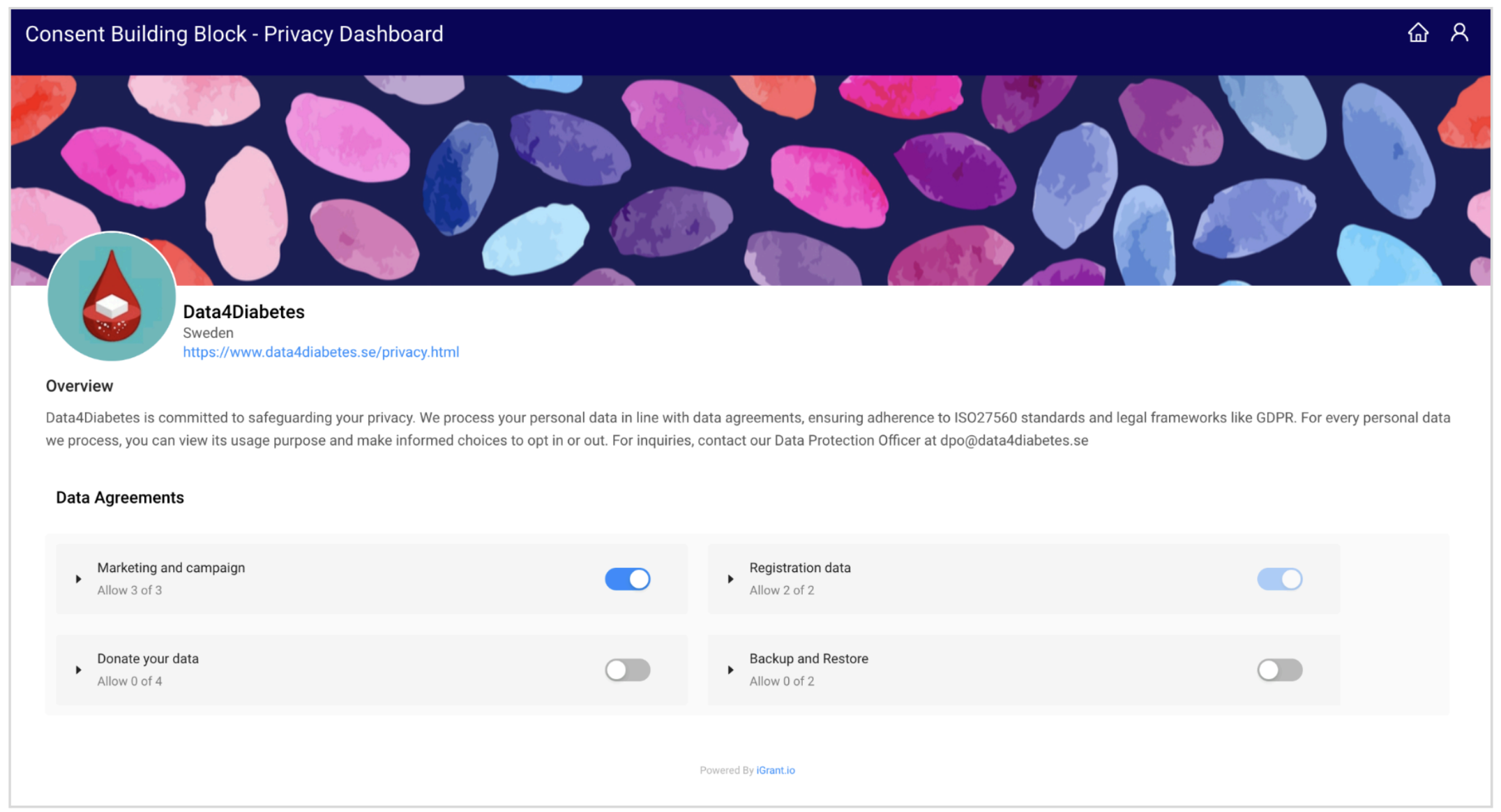 Data4Diabetes Application Demo: Learn how to implement Data4Diabetes application using Consent Management with iGrant.io.